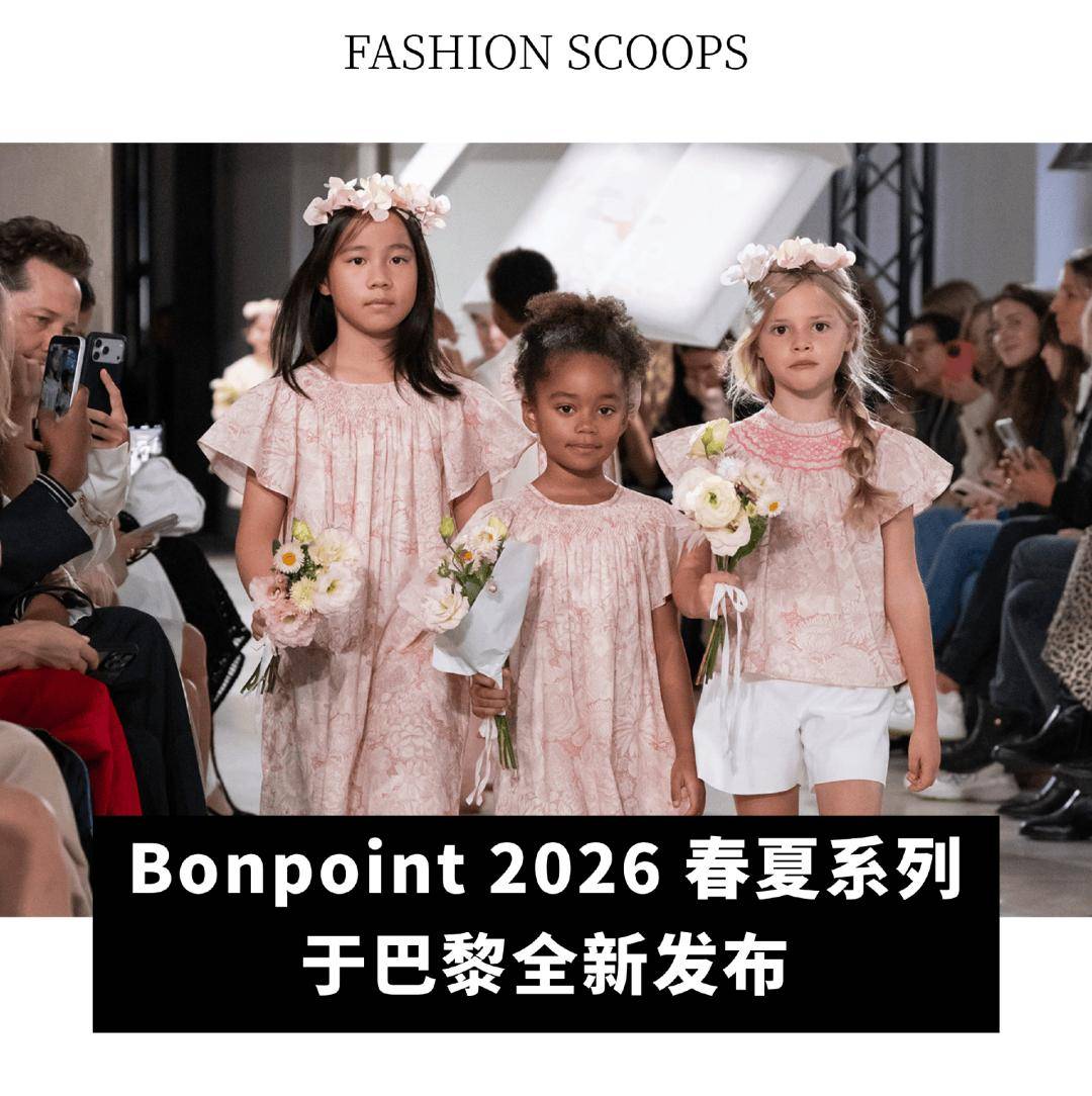 小模特们眼中闪烁雀跃光采,纯真笑颜与精致衣饰相映成趣,灵动诠释以“艺术与匠心”( Art And Artisans )为主题的 2026 春夏系列,展现匠心传承与永恒童年之美。作为曾多次参与巴黎时装周,并在此书写下难忘故事的童装品牌, Bonpoint 于 50 周年之际再度叙写优雅传奇,以浪漫与遐想尽展孩童与生俱来的快乐与优雅,呈献颂赞童年纯粹魅力与率真天性的欢乐庆典。(Lenu)