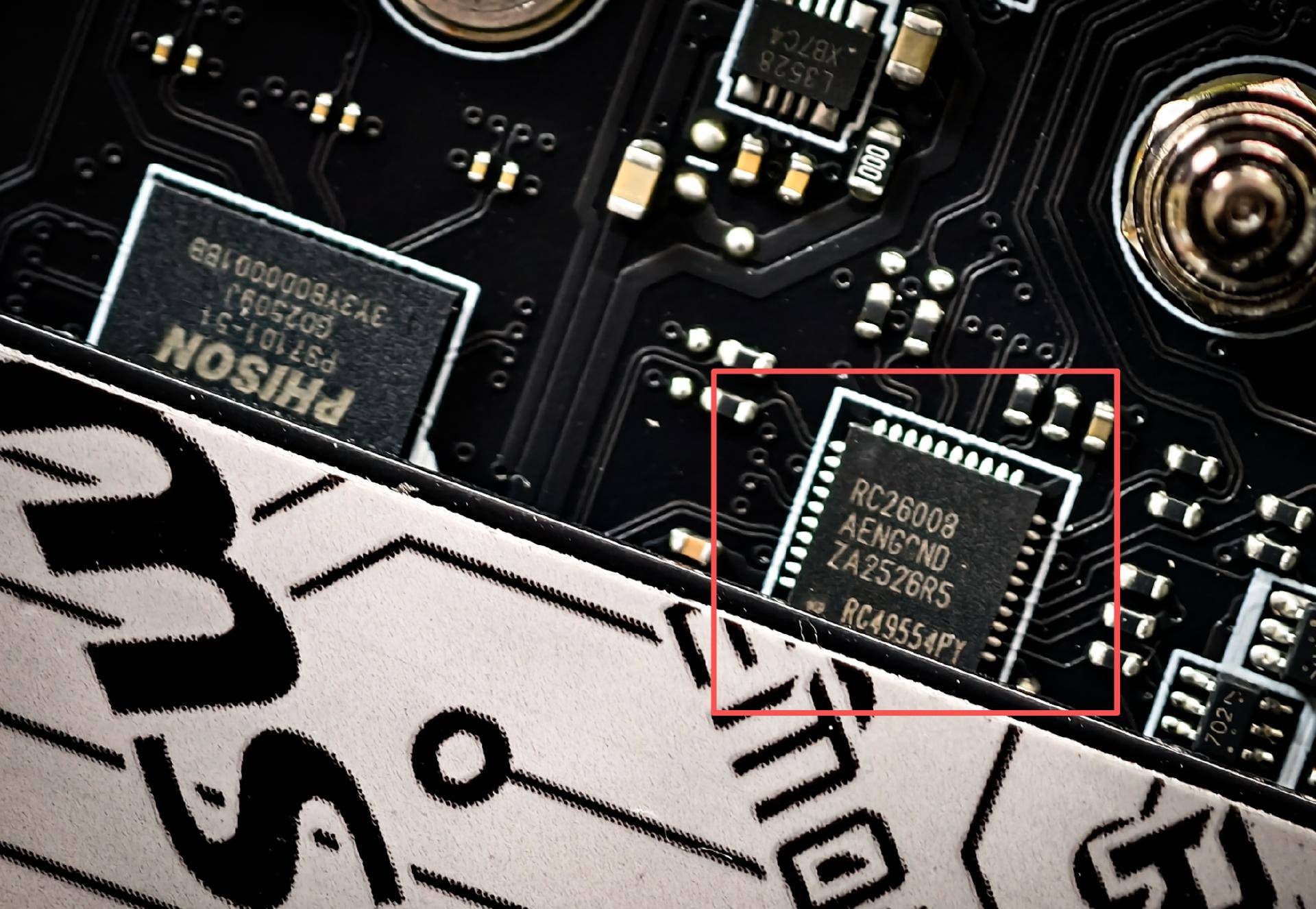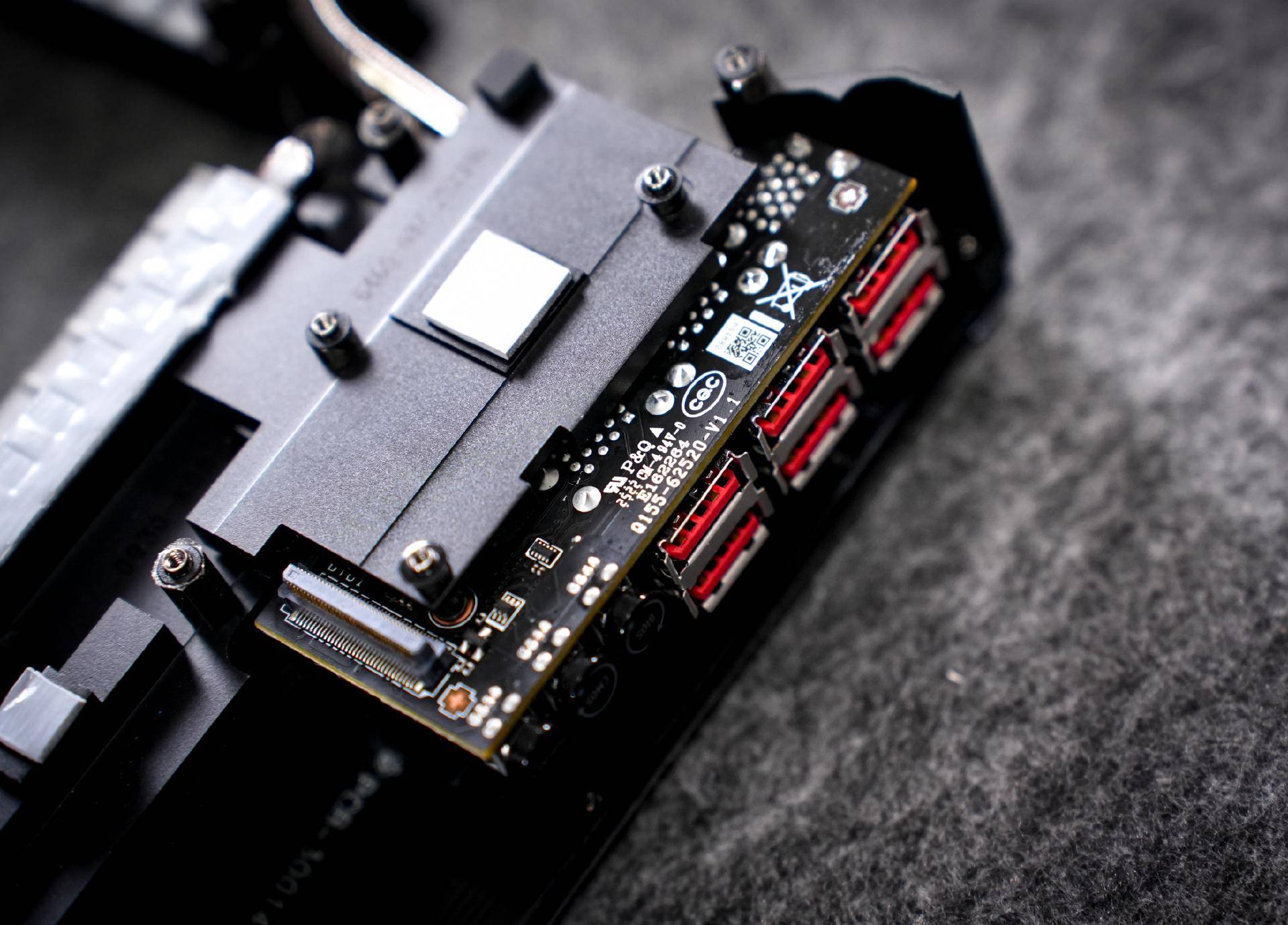 散热装甲的后方还搭载了一个PCB,主要通过搭载了一个瑞昱RTS5420 USB3.2 Gen2x1集线器控制器为USB提供拓展。