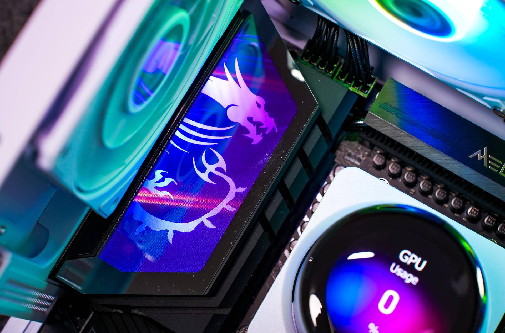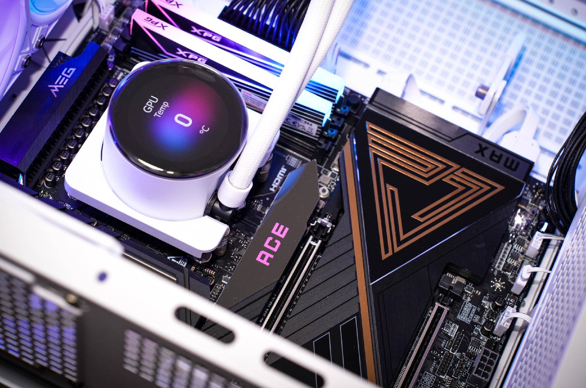 为了压住锐龙7 9800X3D,我用的是微星MPG CORELIQUID P13 360水冷散热器,该散热器除了拥有不错的性能,其美观性和可玩性也是市面上首屈一指的水冷散热器。一方面是其巧妙的隐藏了水冷头的线材,装机会更美观;其次是水冷头上还搭载了一块2.1英寸IPS屏幕,配合MSI Center可以带来自定义各种显示效果,展示效果很不错。