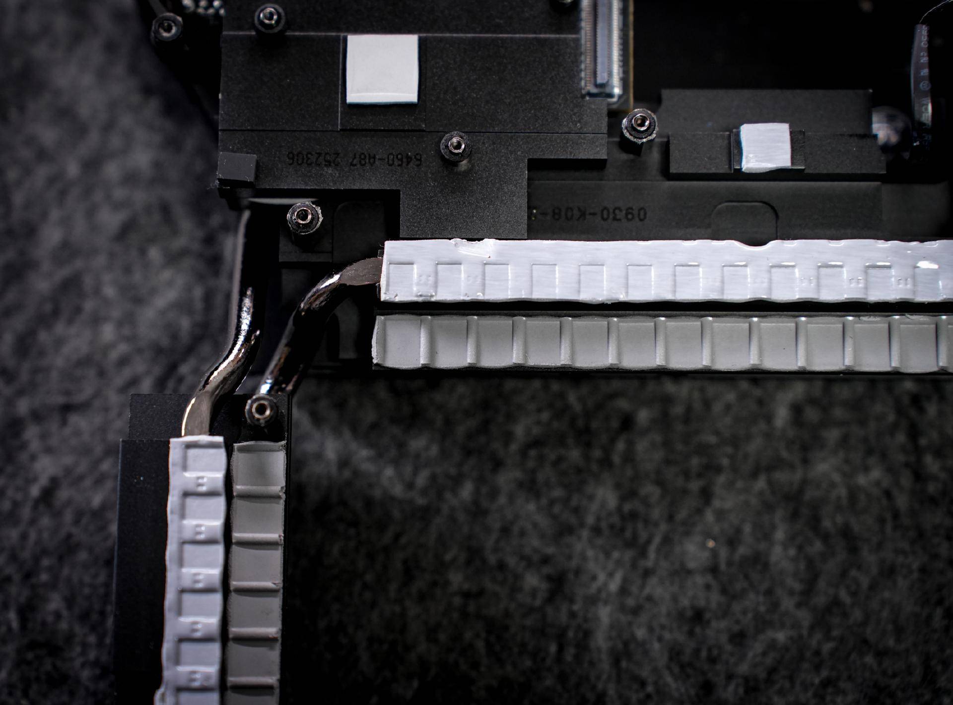 首先来看看这个与众不同的VRR散热铠甲,不仅采用了纯金属设计,内部还搭载了2根复合热管以及9W/mk高效能导热贴,覆盖了主板上的Mos管与电感部分,用来确保散热效率。