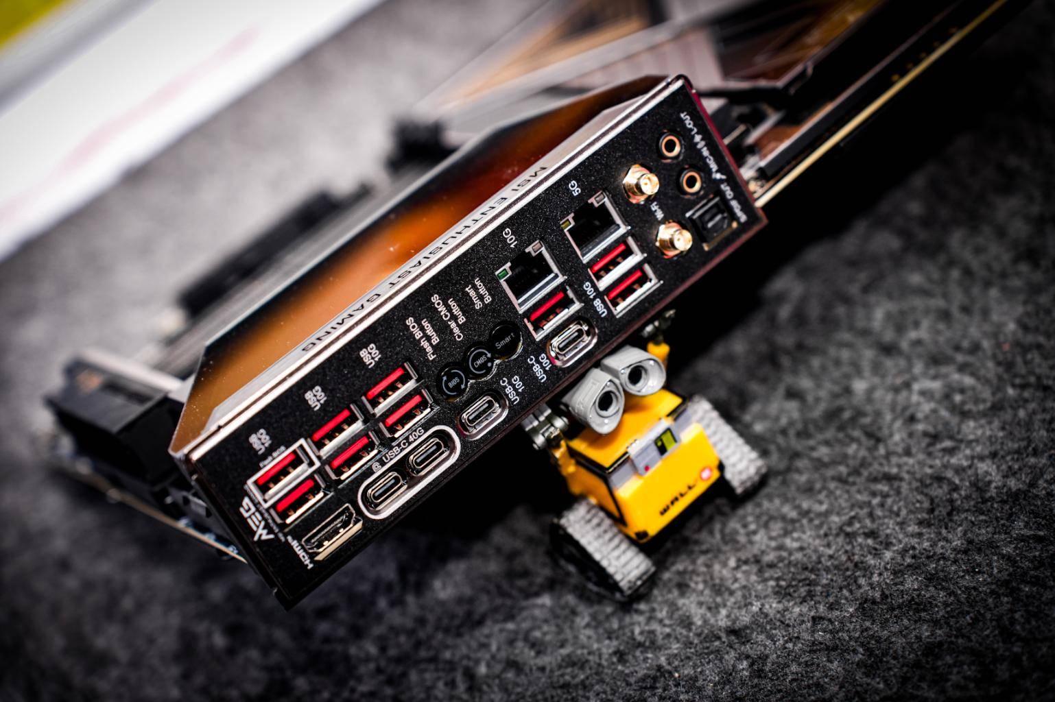 I/O面板方面,微星MEG X870E ACE MAX超神主板也是用全面来形容,USB接口一共有9个,Type-C接口有2个,且都是10Gbps带宽;USB 4.0全功能接口也有2个,具备40Gbps传输带宽+DP协议输出,还有一个HDMI视频输出口,全面满足多设备同时连接的需求。网络方面也是10G+5G双有线网卡和全速Wi-Fi 7无线模块,其中Wi-Fi 7支持320MHz频宽与5.8Gbps传输速率,这组合无论是在线电竞的低延迟需求,还是4K流媒体播放、云渲染等大带宽场景,都能提供稳定高效的网络支撑。