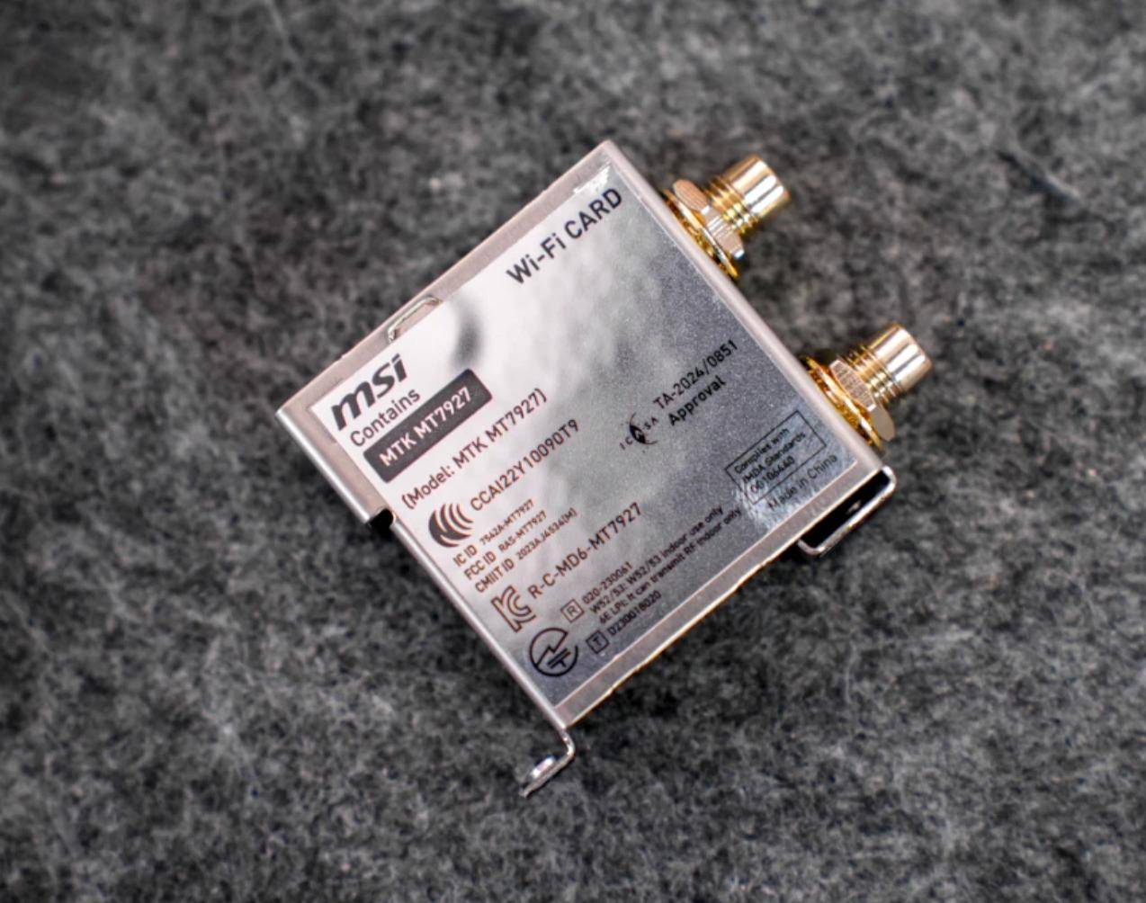 无线网卡则是用的MTK联发科出品的MT7927,该无线nm工艺制程,支持Wi-Fi 7和蓝牙5.3功能。