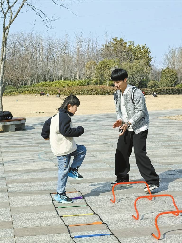 不少家长利用课余时间,为孩子预约体育教练上门授课。小区空地、社区公园,甚至停车场,都能变身临时运动场。跳绳、跨栏、武术……多个体育项目在家门口即可开展,一批专业的“上门体育老师”也应运而生。