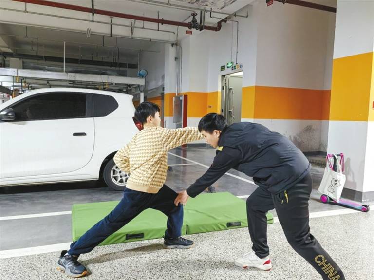 10岁的孙敬程报名参加了武术特色课程,每天放学后,他都会在小区的地下停车场跟随教练进行训练。“因为是一对一上课,教练能全程关注孩子的动作。”孙敬程的母亲告诉记者,上门体育课不仅让孩子远离屏幕、夯实身体素质,也为未来中考体育打下了基础。
